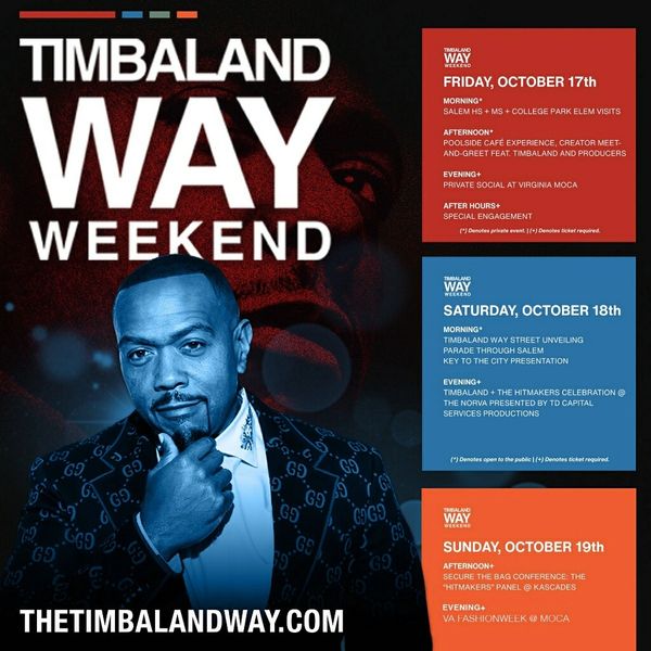 Join us for an unforgettable three-day celebration honoring legendary super-producer Timbaland and his impact on music, culture, and the community. The Timbaland Way Weekend is packed with school visits, community events, special engagements, and star-studded celebrations!